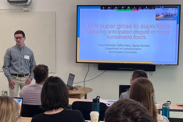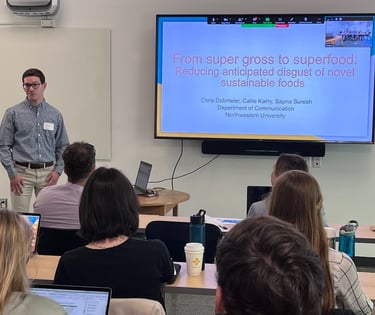 I presented our projects on (1) the potential for stories to reduce our disgust-related risk perceptions of novel sustainable foods (seaweed, edible insects, etc. - yum!), and (2) an analysis of other scholars' analyses (what we call a "meta-analysis") on the persuasive effects political satire programs like Last Week Tonight with John Oliver and Saturday Night Live! From gross foods to comedy, this weekend reminded me how much I enjoy my research discipline.